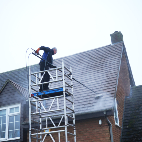 til fjernelse af alger og mos fra tage og tagsten, alt sammen fra jordens sikkerhed.
