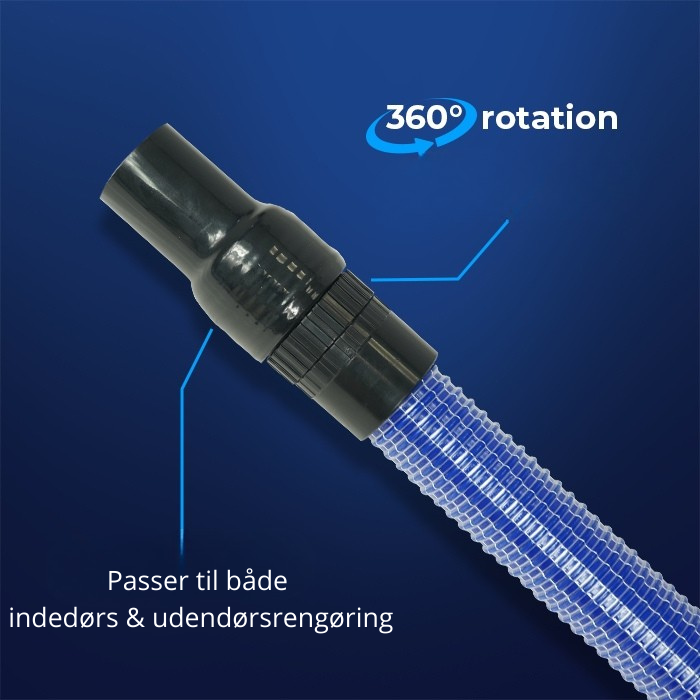 Den drejelige slangemuffe sikrer fri bevægelse og maksimal sugeeffekt ved rengøring i højden uden slangesnoninger.