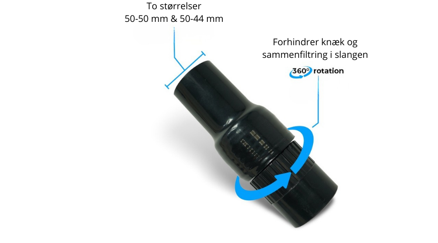 Drejelig slangemuffe med 360° rotation til 50 mm
