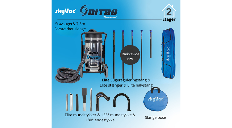 Komplet tagrendesæt med SkyVac Nitro Støvsuger