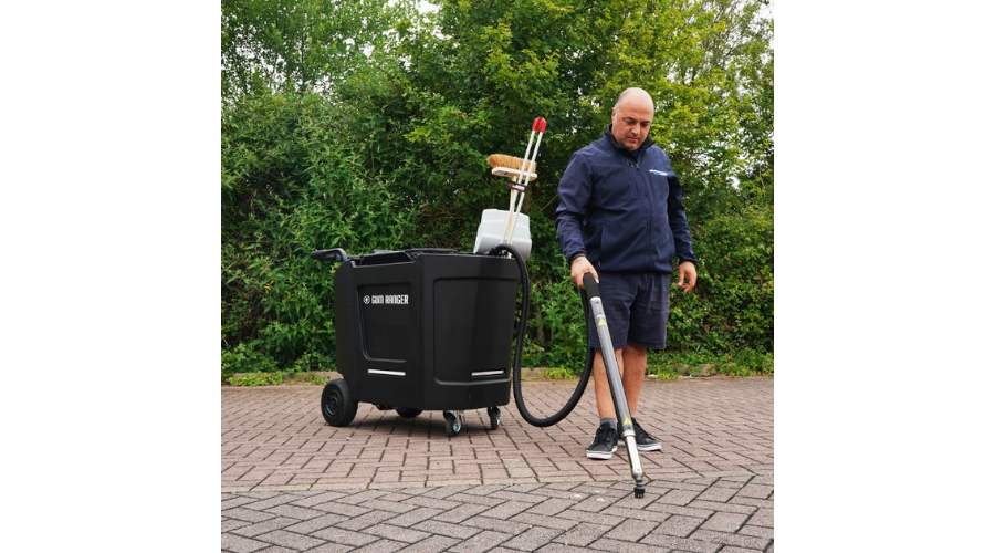 Fuldt motoriseret rengøringssystem med op til 12 km rækkevidde og 3,5 timers batteritid for maksimal effektivitet.