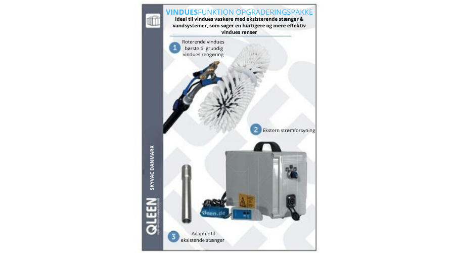 Opgrader din vinduespudsning med Rota QLEEN Classic – den professionelle motoriserede rengøringsbørste, der gør vinduesrengøring hurtigere og mere effektiv. Denne børste rengør op til 10 gange hurtigere end traditionelle metoder og leverer et stribefrit resultat på alle glasoverflader, herunder vinduer, glasfacader og solcellepaneler. Med lavt vandforbrug og høj effektivitet er den perfekt til både professionelle vinduespudsere og private. Få et hurtigere, renere og mere bæredygtigt resultat med Rota QLEEN Classic!