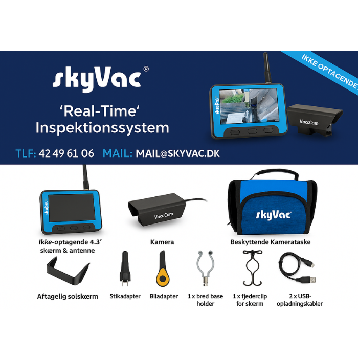 SkyVac Inspektionskamera giver dig klar visuel inspektion i højden – perfekt til tagrender, tage, facader og svært tilgængelige områder.