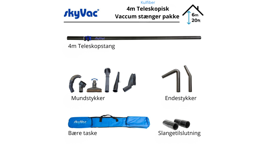 Denne teleskopstang i kulfiber er den perfekte løsning til indvendig rengøring i højden op til 4 meter – sikkert fra gulvet.