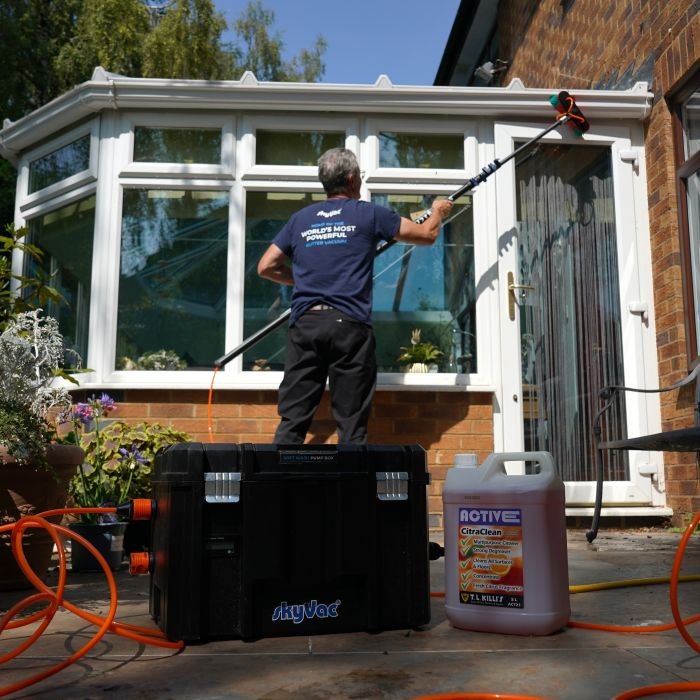 Soft Wash børste til effektiv og skånsom rengøring af udhæng, tagrender, facader og udestuer.