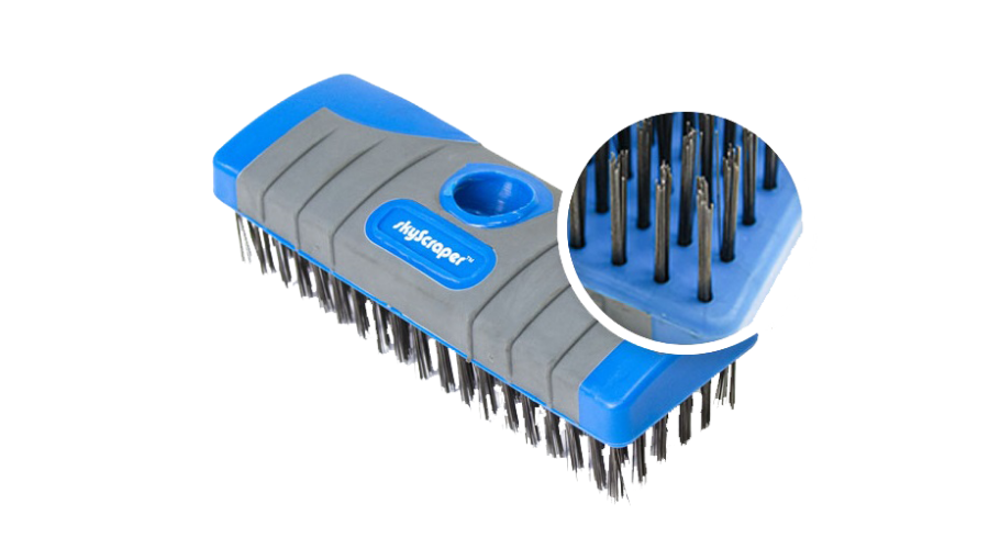 Effektiv stålbørste til tagrensning, der nemt fjerner mos, alger og snavs helt ned i tagstenenes samlinger.