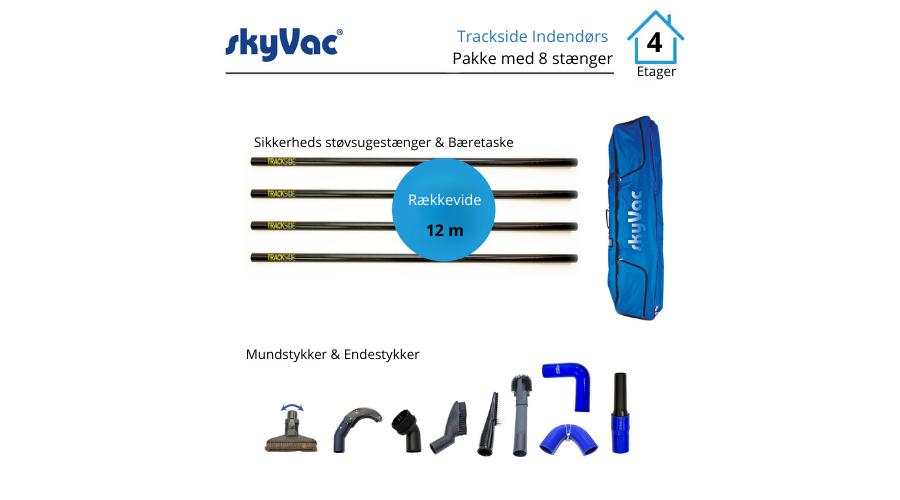 Trackside sikkerhedsstang pakke er et professionelt teleskopstang-system til rengøring og vedligeholdelse – både indendørs og udendørs.